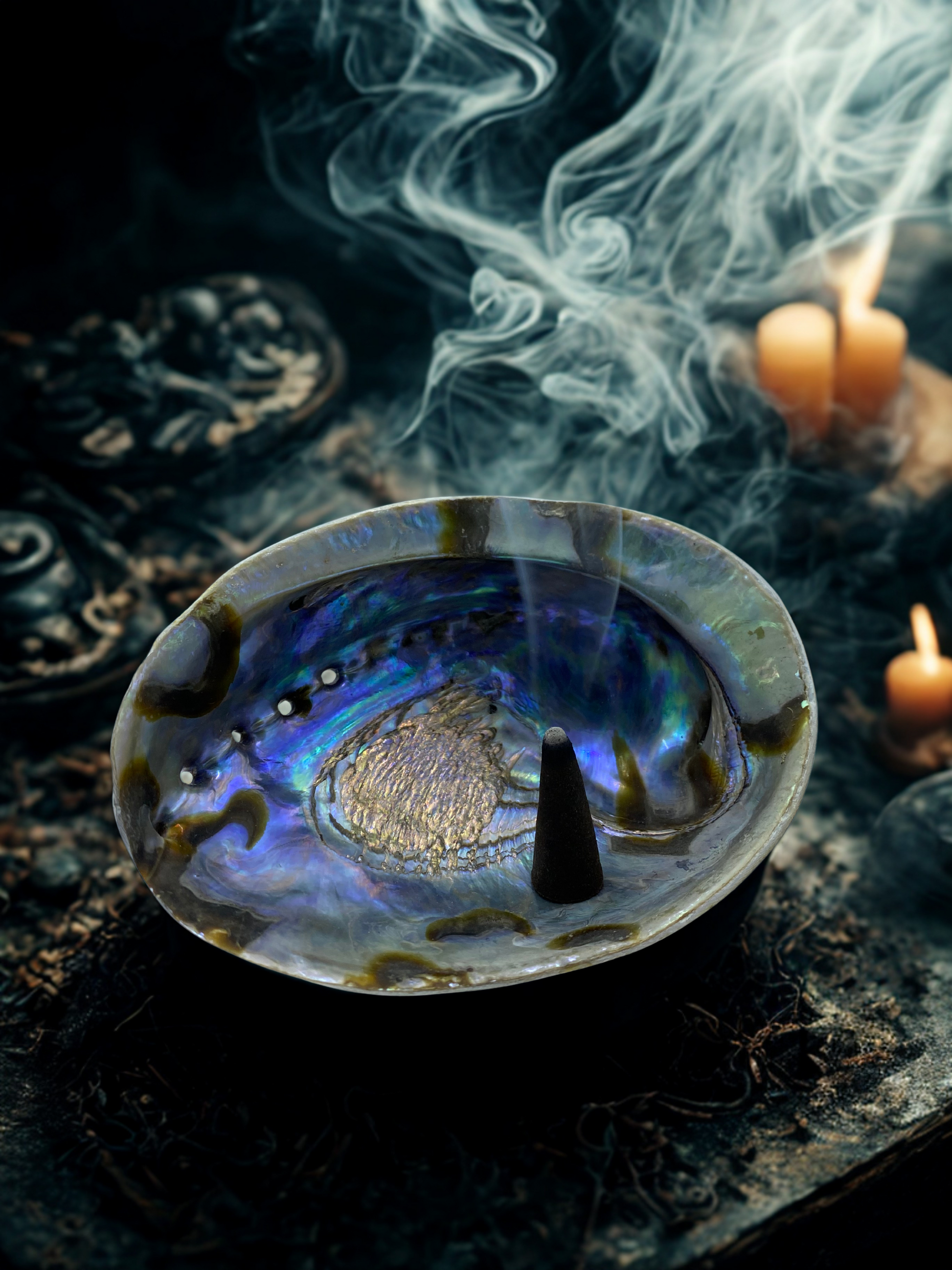 Utilisés à des fins positives, les rituels magiques permettent de réaliser vos aspirations et de s'harmoniser avec votre environnement. Accessoire indispensable pour vos séances de fumigation, la coquille d'ormeau, également appelée coquille d'abalone, est le support idéal pour y déposer vos bâtons d'encens, de sauge ou de palo santo car elle résiste à la chaleur.